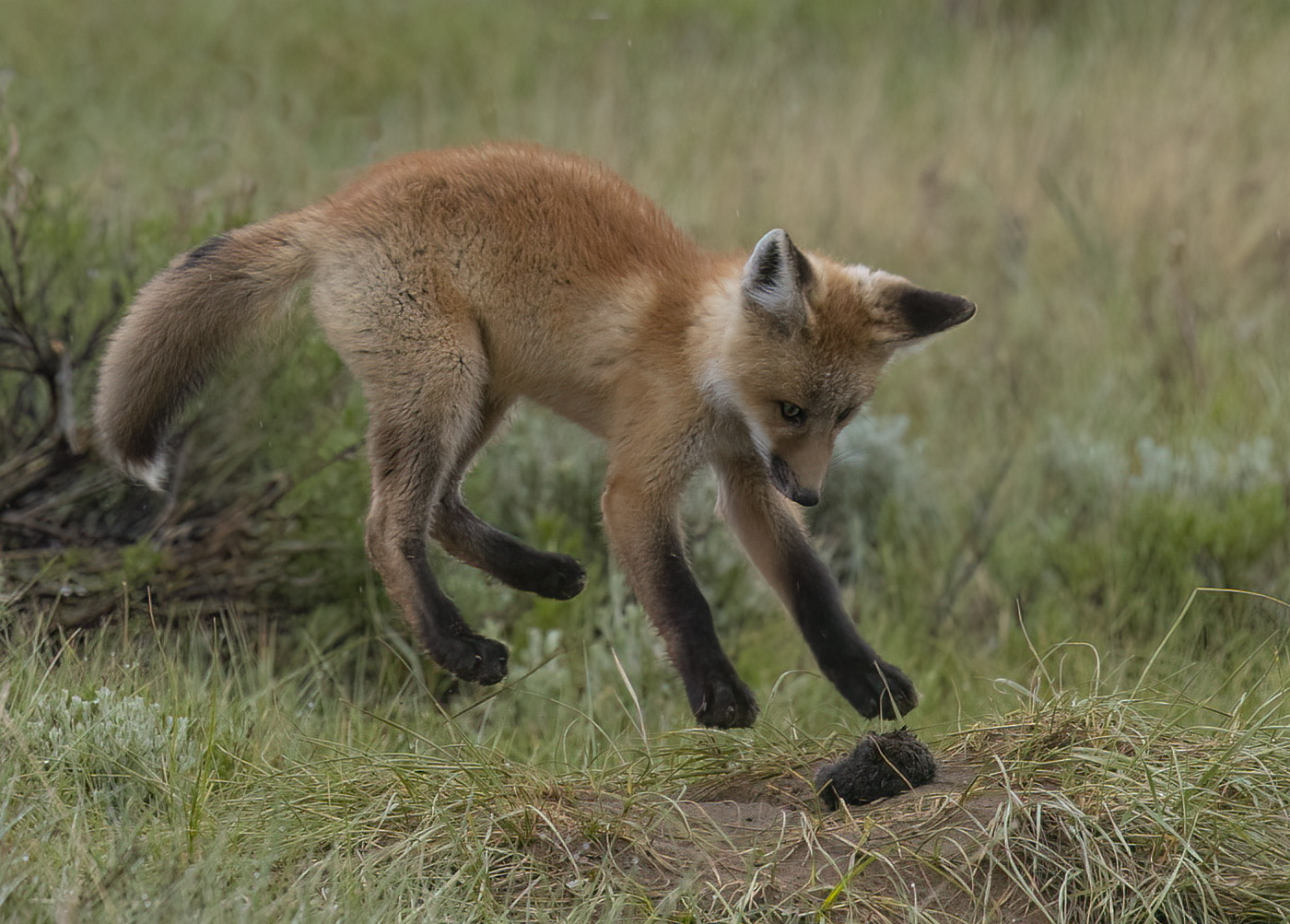 Kit Fox Jumping Over Vole