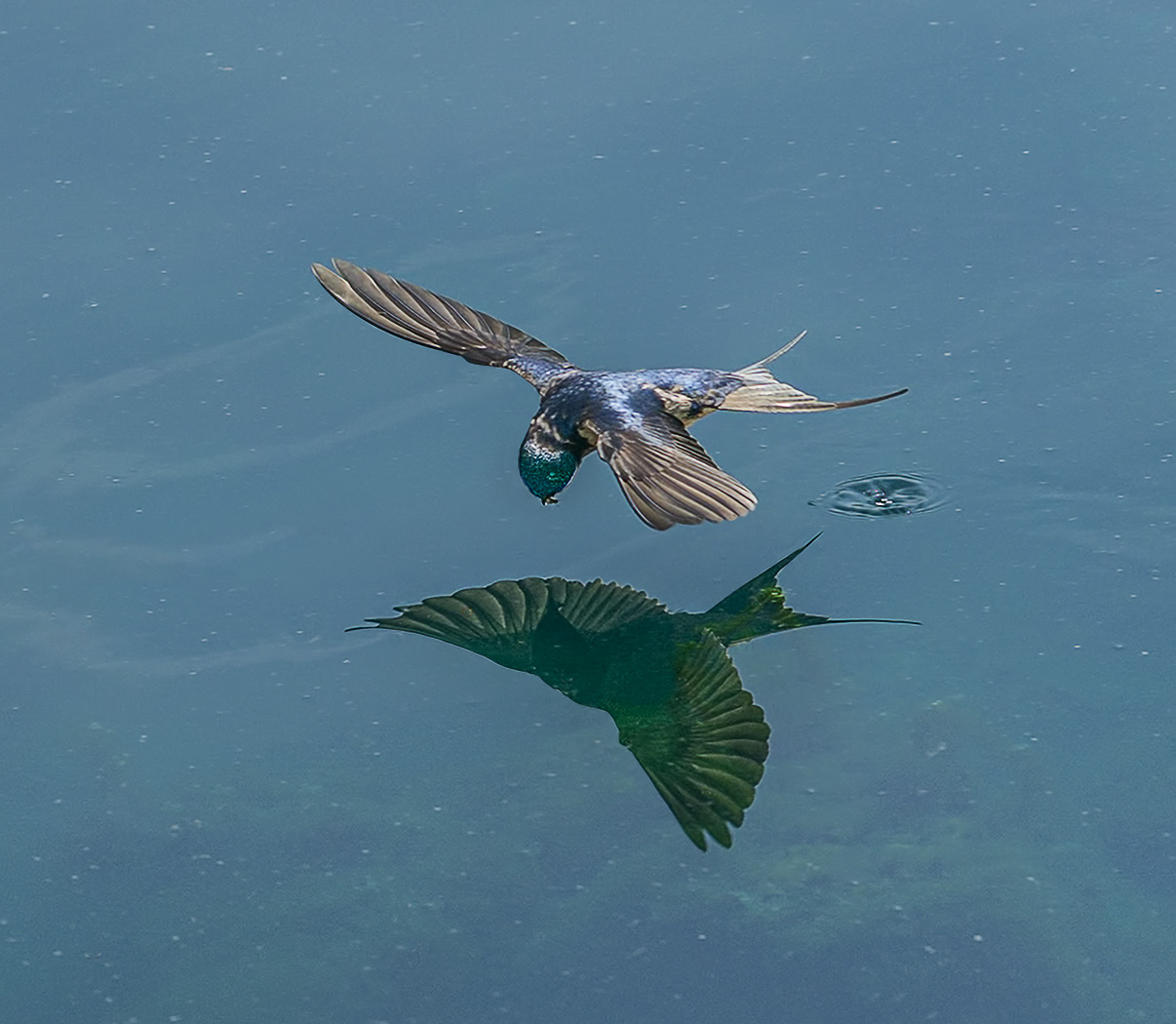 Barn Swallow Grabs a Bug Fromm Water Surface