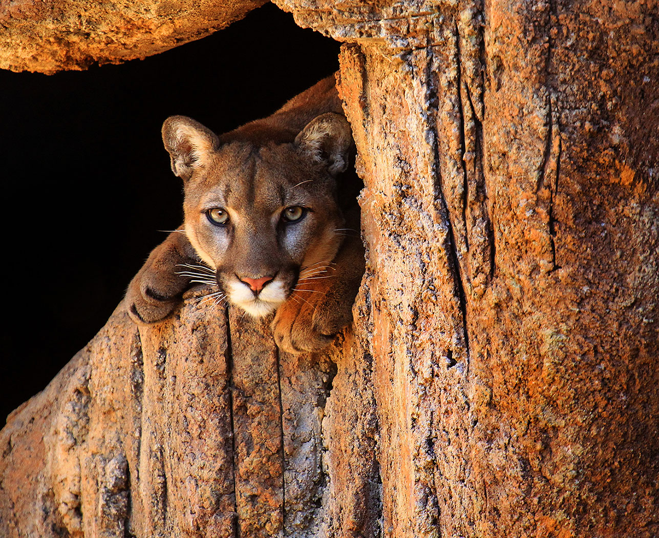 Cruz, the ASDM, Mountain Lion gives me an intent stare as warm light hits his cave