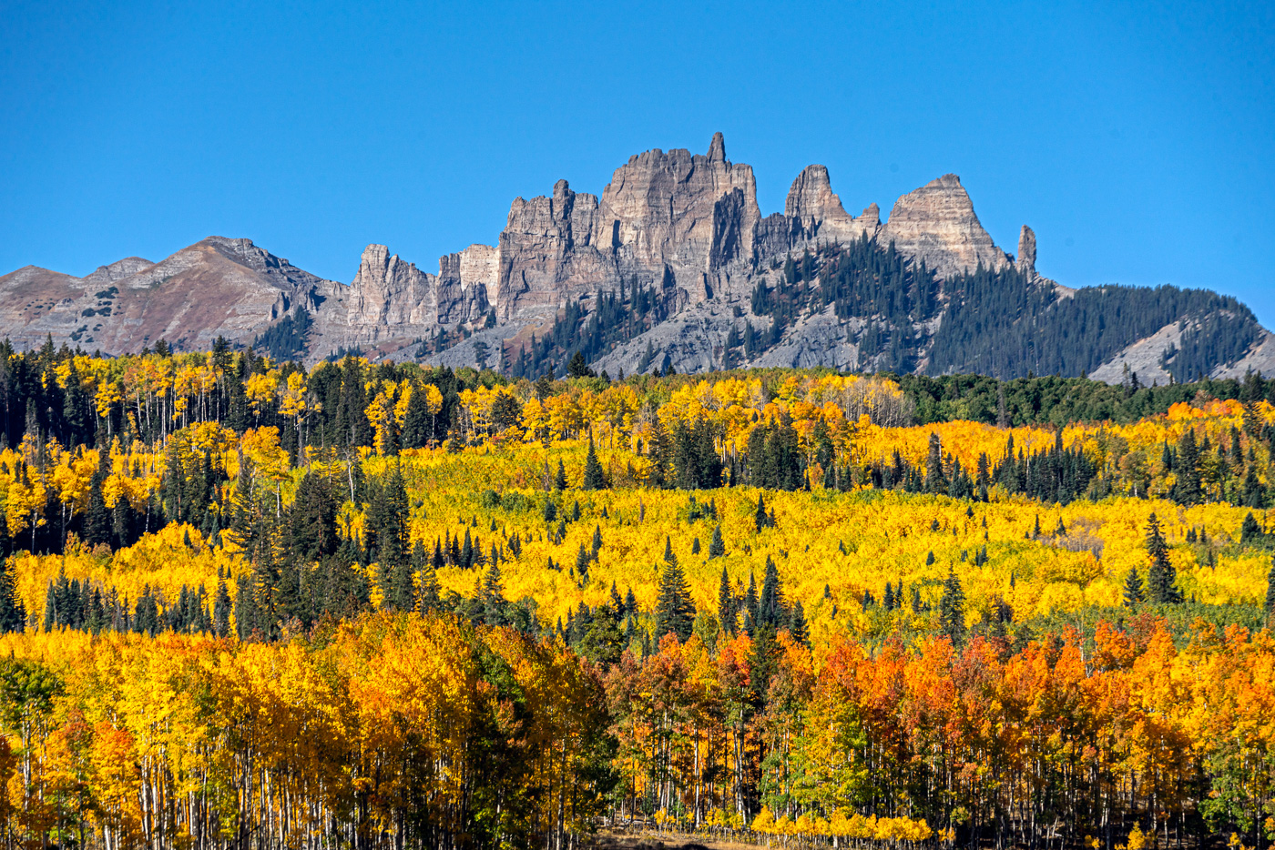 Most of the time you see the Castles photographed from the top of Ohio Pass in a Grand Landscape. I decided to photograph from a much closer location zoomed in with a long lens and Great foreground Fall Color at peak conditions.