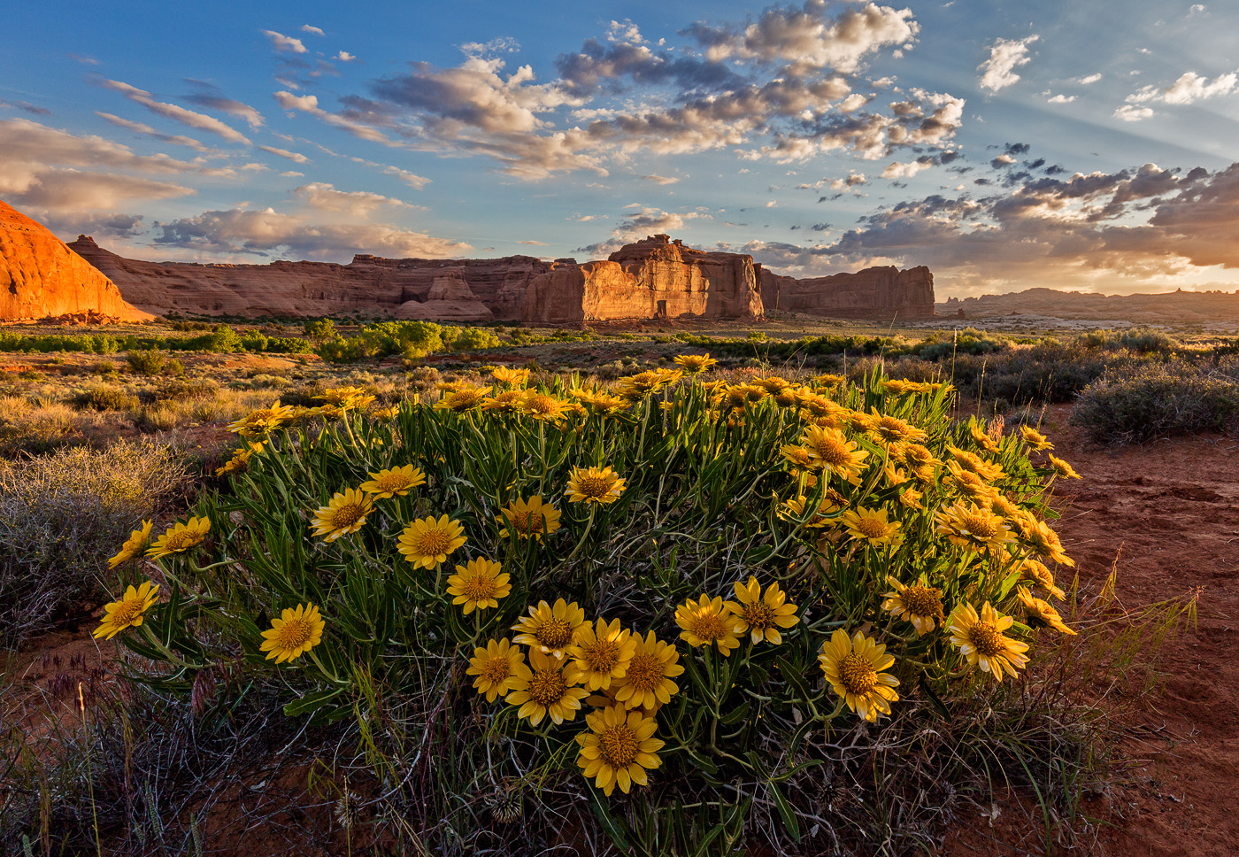 Mule Ears Wildflowers at Sunrise in Arches NP