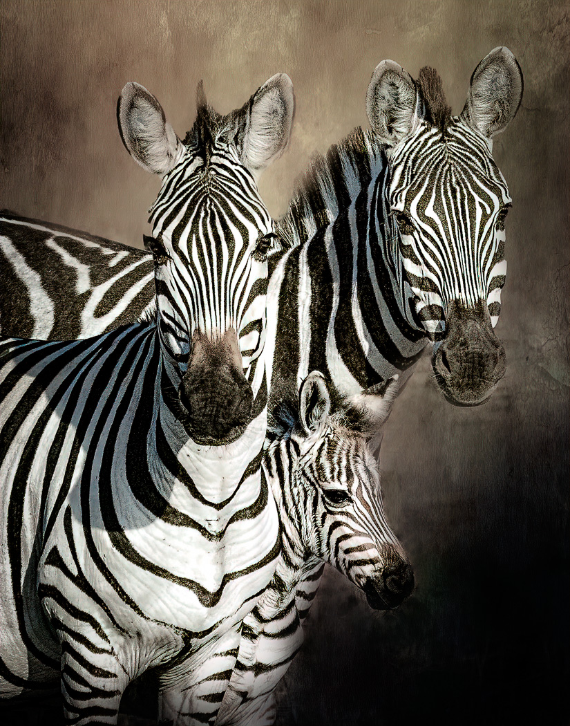 This zebra foal had been born just minutes before. It would be nice to think this is a family unit, but it's more likely to be the mother and another mare standing guard over the newest member of the herd.