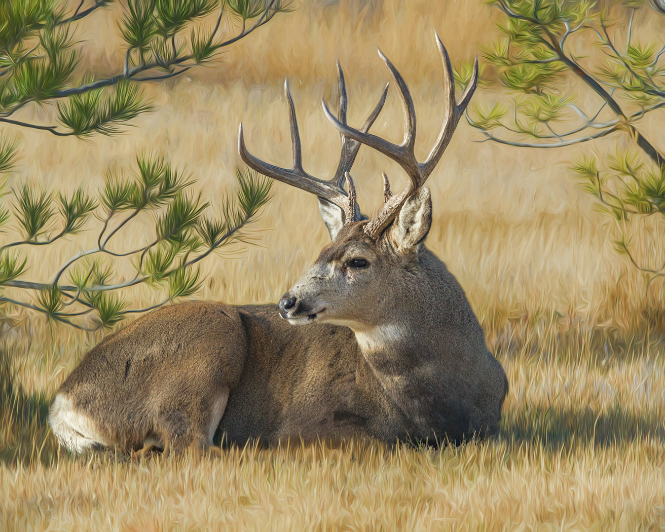 Background edited using Topaz liquid lines. Mule Deer is "as shot."