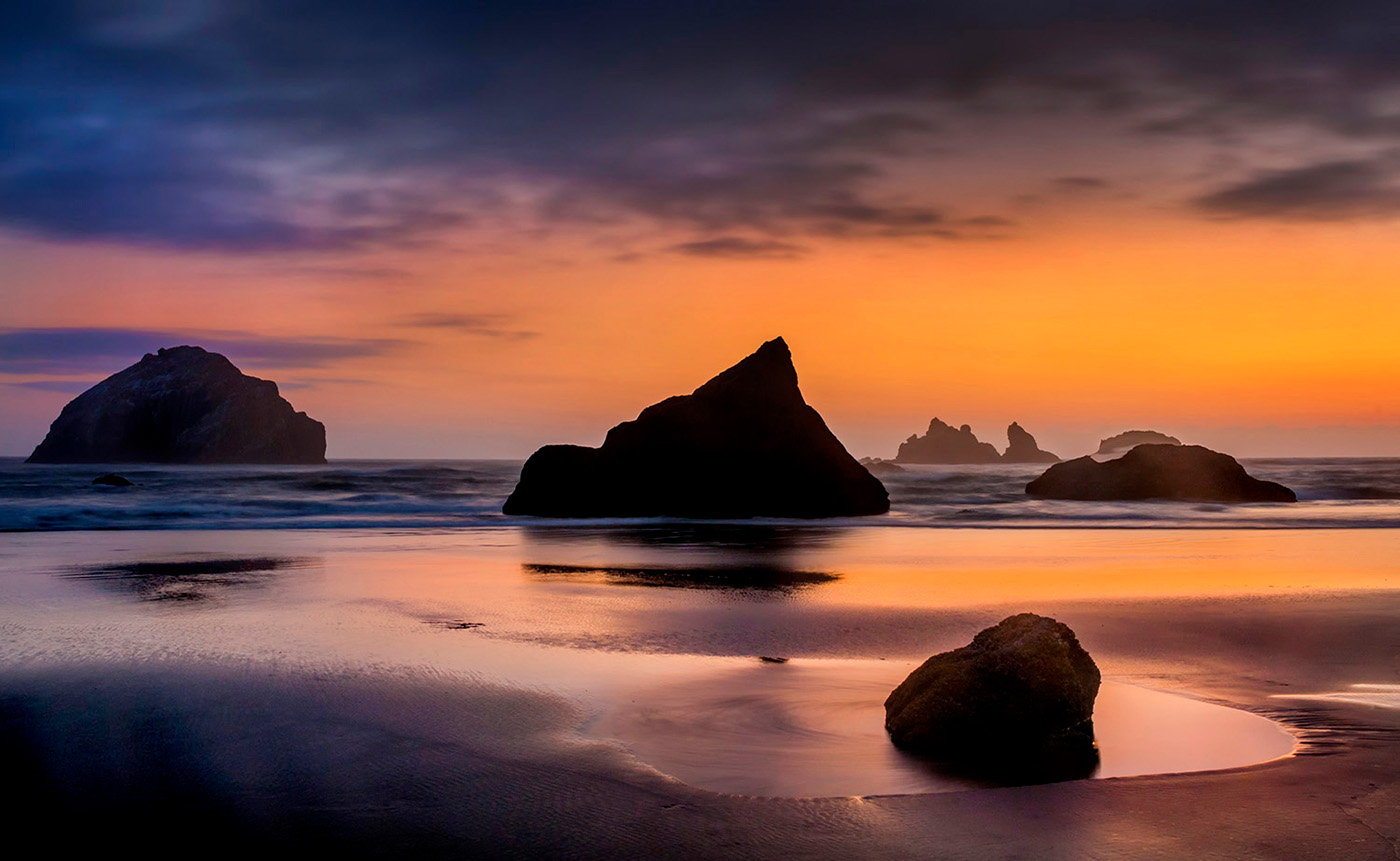 Bandon Beach post sunset along the Oregon coast made on a clear evening during the summer.