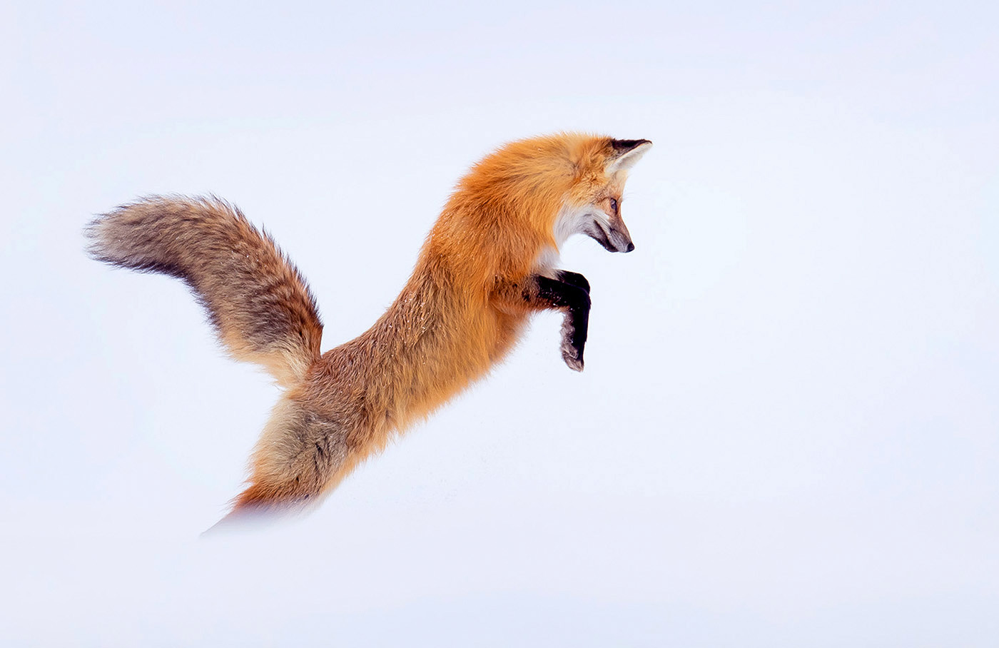 Yellowstone in the Winter in Hayden Valley. The fox was hunting and stalking a vole. The attempt was successful.