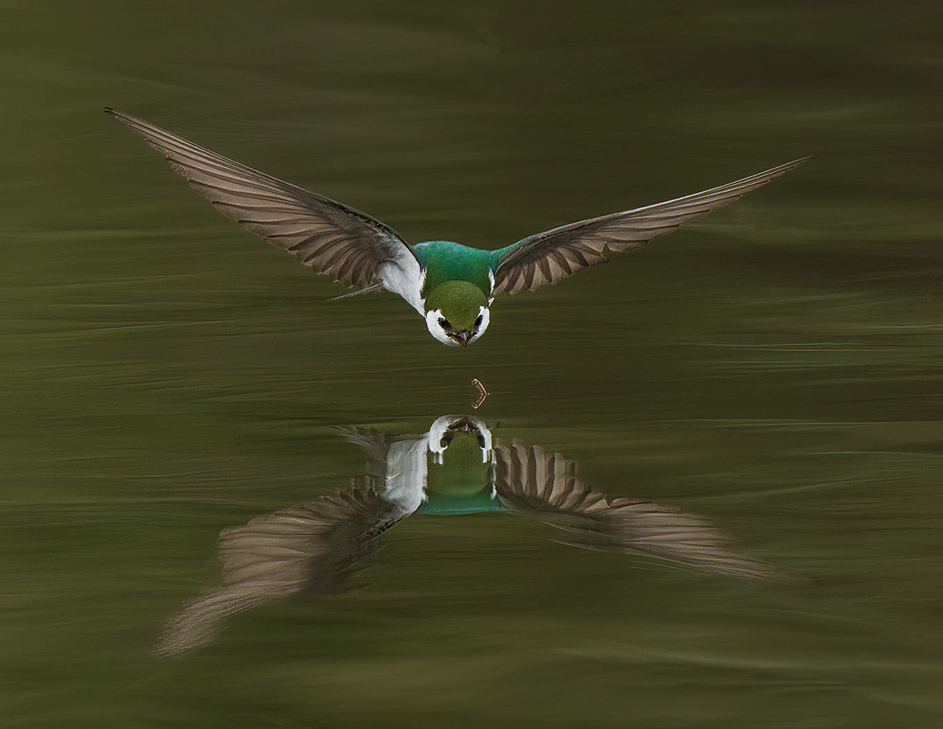 Many swallows were swarming and diving for food.