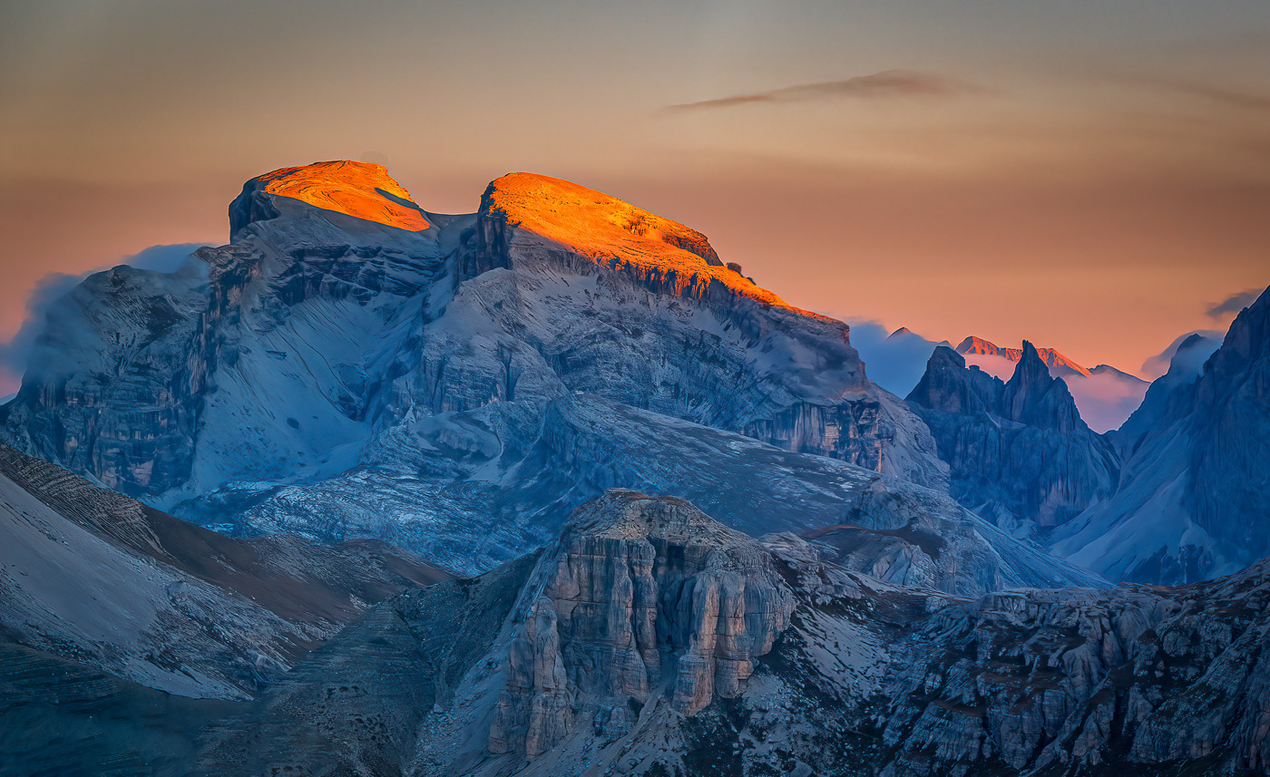 As the sun hit the summits at dawn, blue hour simultaneously faded away