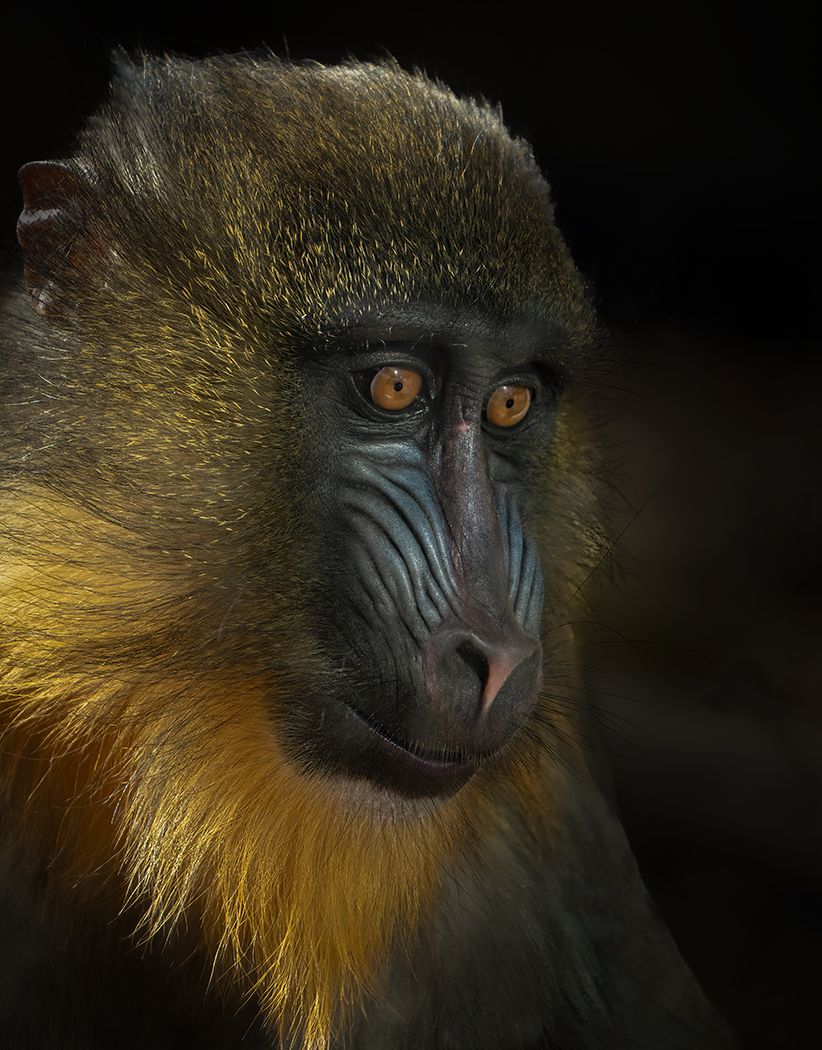 Female Mandrill taken through the glass window. She was side lit and her hairy chin resembled a beard.