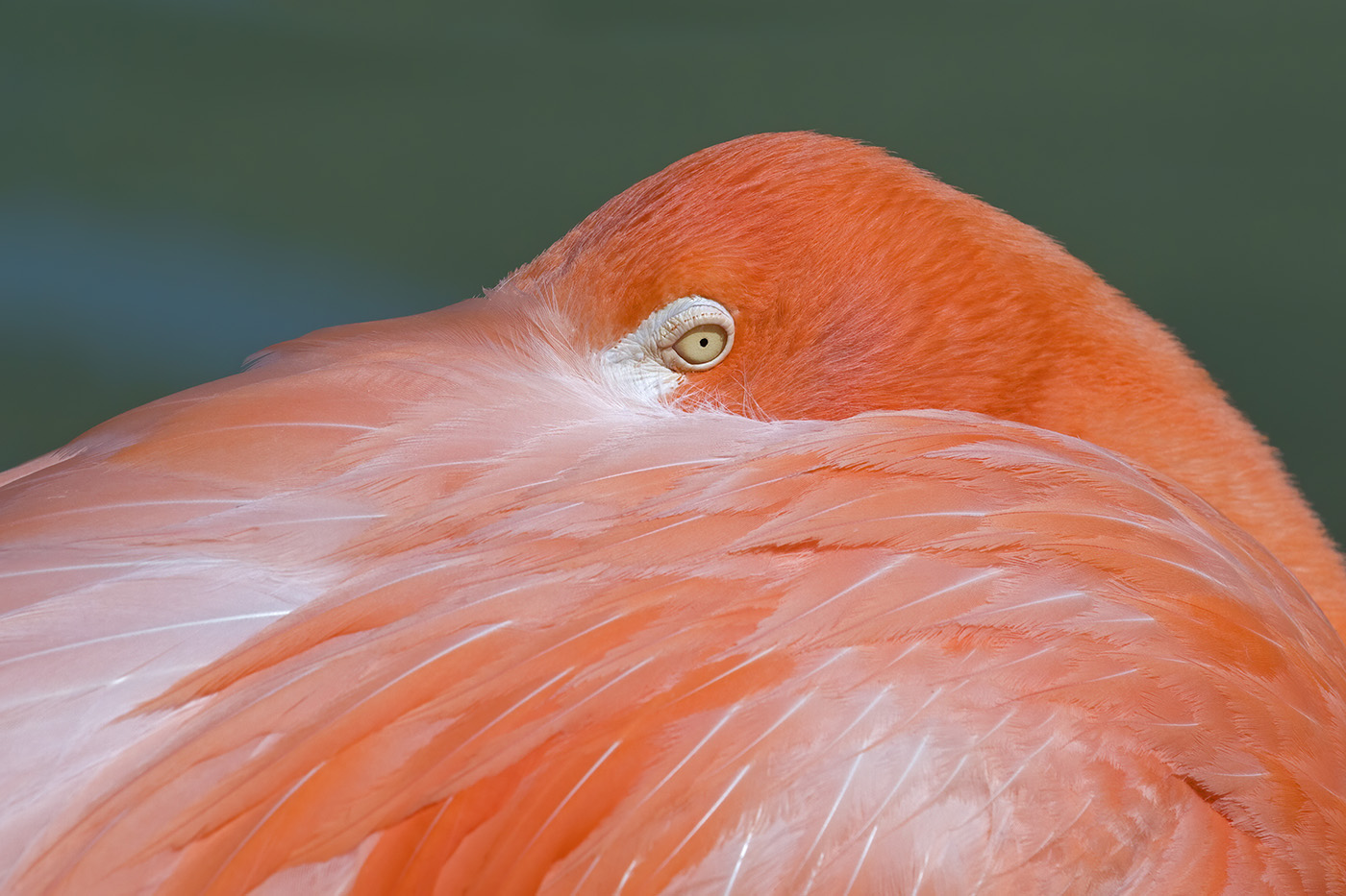 It's all about light and background with this flamingo image. As it was mid-morning on a sunny day I had to wait for clouds to come filter the bright colors of the flamingo. I additionally was fortunate to be able to re-position myself to capture the bird with the best background.