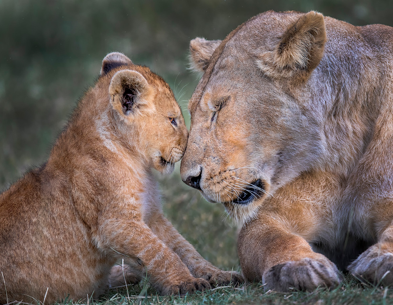Lioness with cub in an endearing pose taken with a 600 to get in tight to show the emotion.
