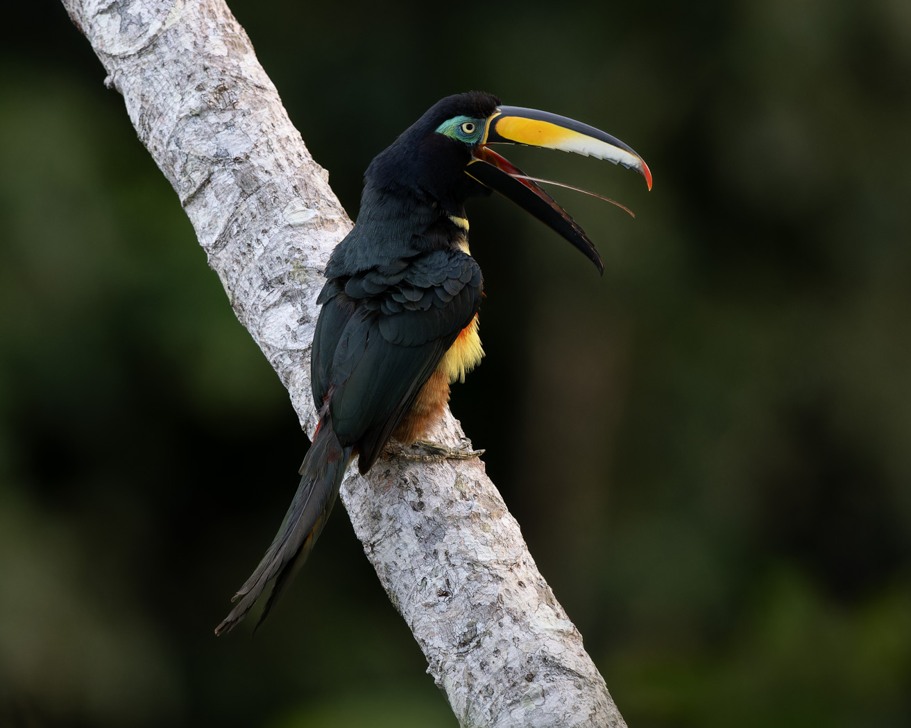 For several moments I had a clear shot at this Many-banded Arakari calling at eye level (eye level that is 100 feet up in a canopy tower).