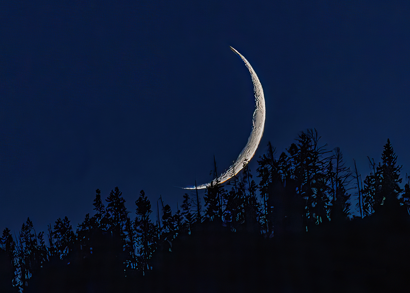 Taken from my deck in Summit County. The Crescent Moon was just setting behind Swan Mountain.