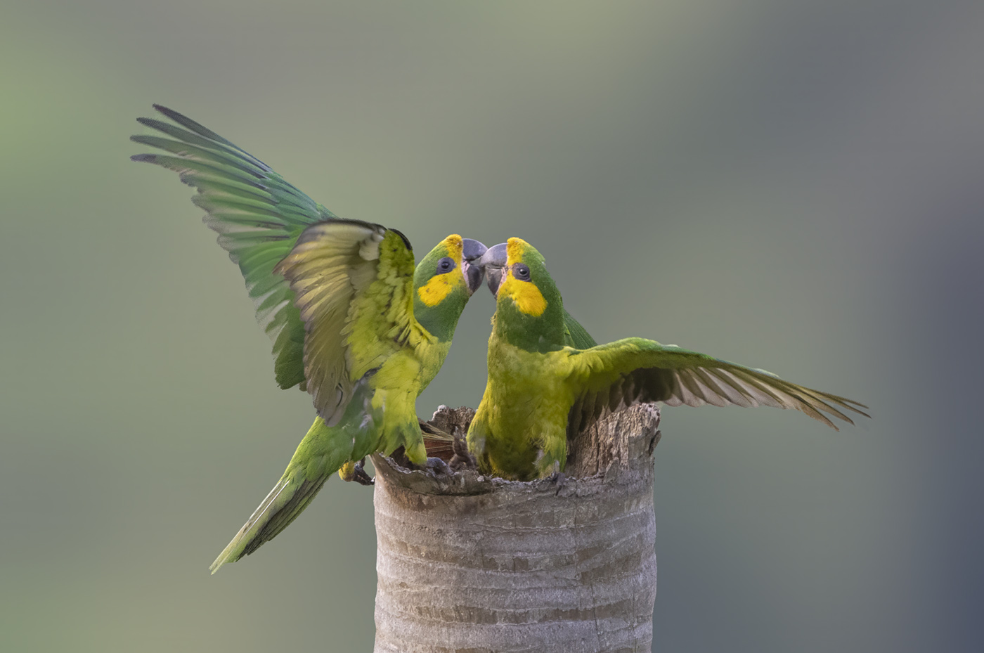 The Yellow-eared Parrot almost disappeared due to habitat loss. It was thought to be extinct up until April 1999, when a group of researchers that were sponsored by ABC and Fundación Loro Parque, discovered a total of 81 individuals in the Colombian Andes (Wikipedia). We were very fortunate to photograph at a nest high in the Andes in Columbia, South America.