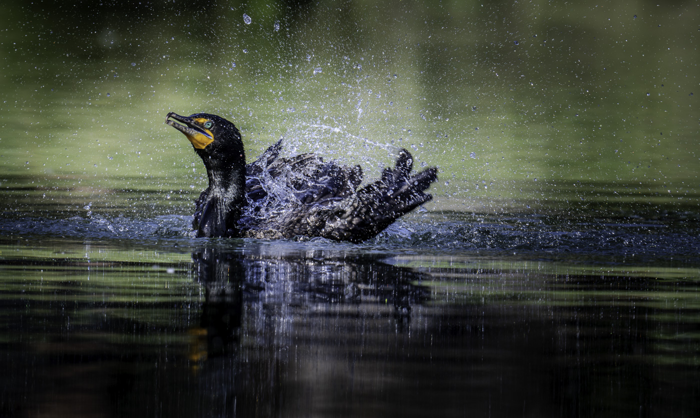 Cormorant taking a bath