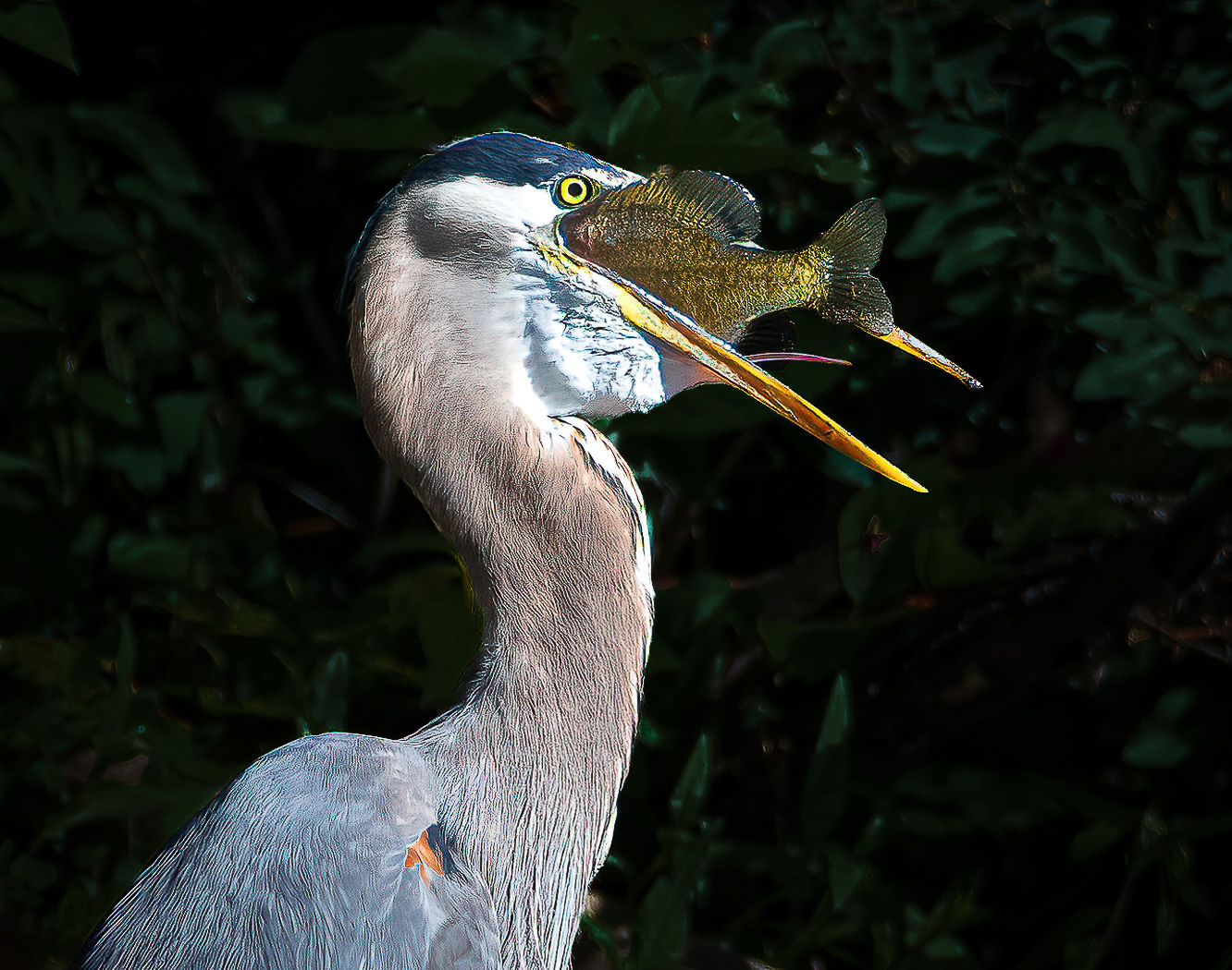 This was taken at Belmar Park in Lakewood, Colorado. The Heron played with the fish a little bit and the swallowed it whole head first!!