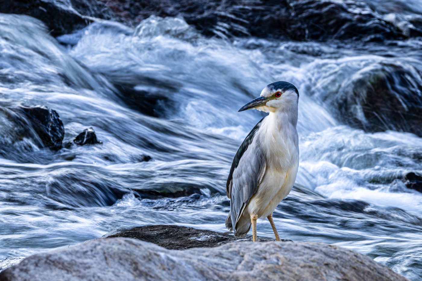 Black-crowned Night Heron watching for some meal to come by. Photo was taken at 1/25 of a second, handheld to blur the water