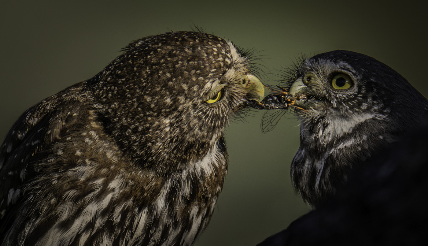 Nikon z8 570mm 1/3200 f6,3Early morning northern pygmy owlet being fed by mother early morning
