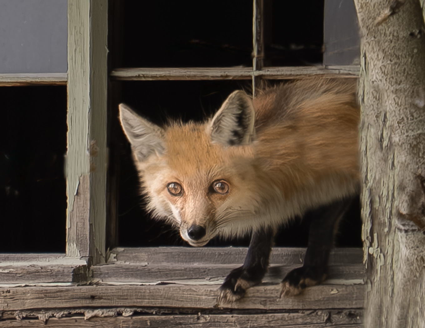 This vixen had established a den in a dilapidated shack for her and her two kits.