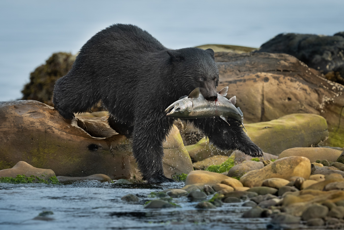 Black Bear with Salmon