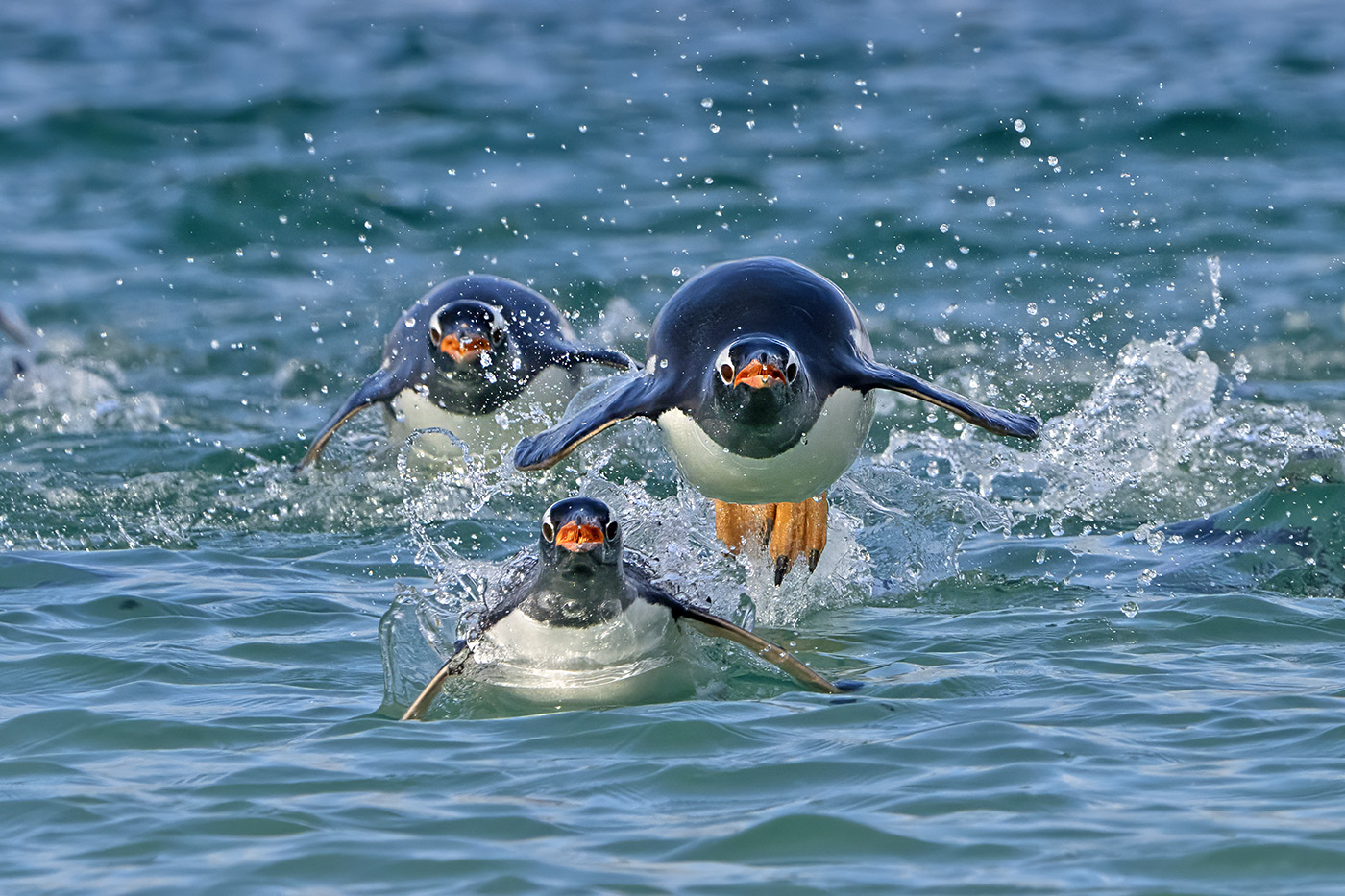 A pod of Gentoo penguins returns from their daily hunting at sea. It was a breathtaking sight.