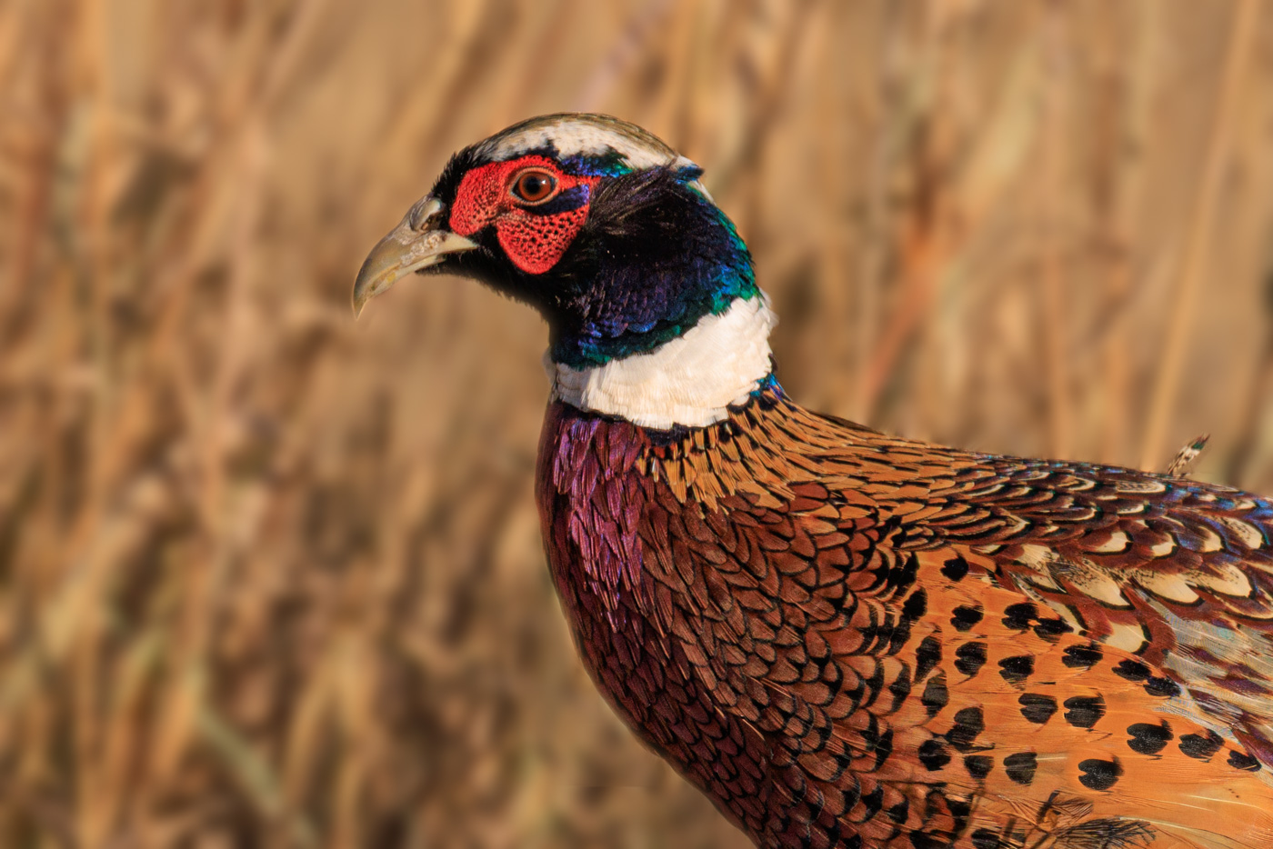 The pheasant was right beside the road to give a beautiful portrait.