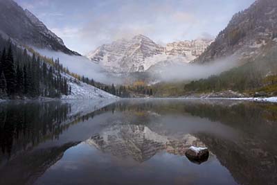 I got back yesterday from several days at the Maroon Bells and Crystal River areas. The Maroon Bells and vicinity has significantly less color this year. It is due to a fungus on the leaves, due to excessive moisture this spring and summer, I was told. There is more snow this year than in years past though. I did get some nice snow and fog conditions Tues. morning that produced some nice images. Otherwise that area and the area around Marble are not as colorful as in past years. The lower elevations of Aspen and the Crystal River are still green though and may still provide some color. I am hoping to head over to Crested Butte/Kebler Pass next week to check that out.