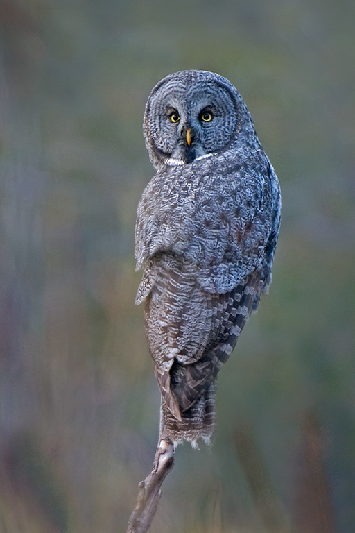 The morning light was low and filled with smoke as I photographed this female Great Grey Owl through a small opening of willows. But I was determined as I had been trying for more than a week to capture her and was pleased with the results.