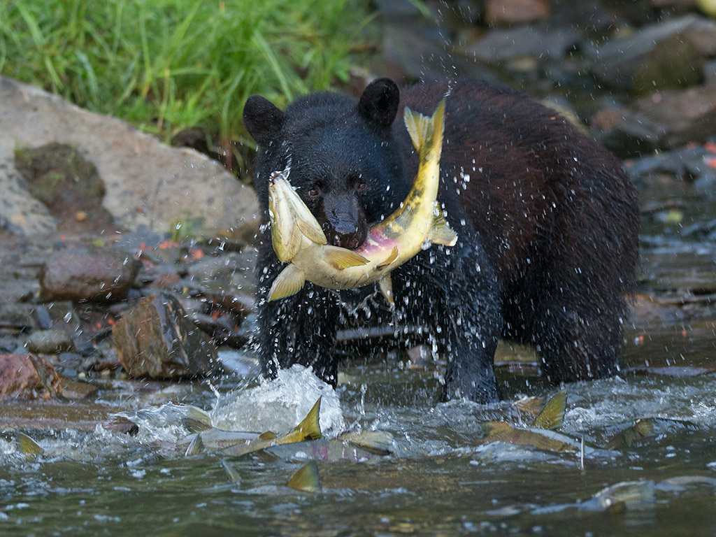 Black Bear with Dog Salmon catch