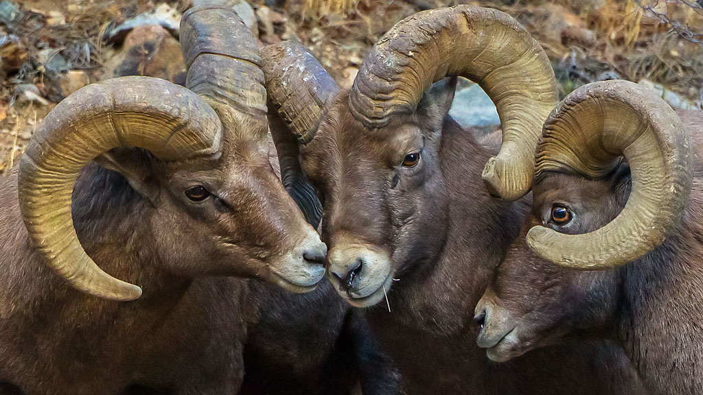 I photographed these Bighorn Sheep rams yesterday. Unfortunately, the sun took for ever to reach them and, by the time it did, they were ready to lie down but it was good to see some headbutting. The tough part was getting separation as they were always bunched together so I concentrated on getting head shots instead.
