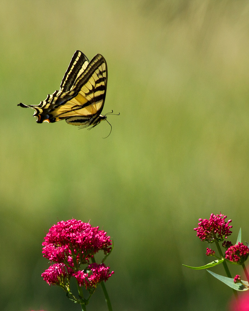 Often this summer I have seen a pair of Tiger Swallowtail Butterflies cruising over the flower beds. Eventually they stop to get a sip of nectar.