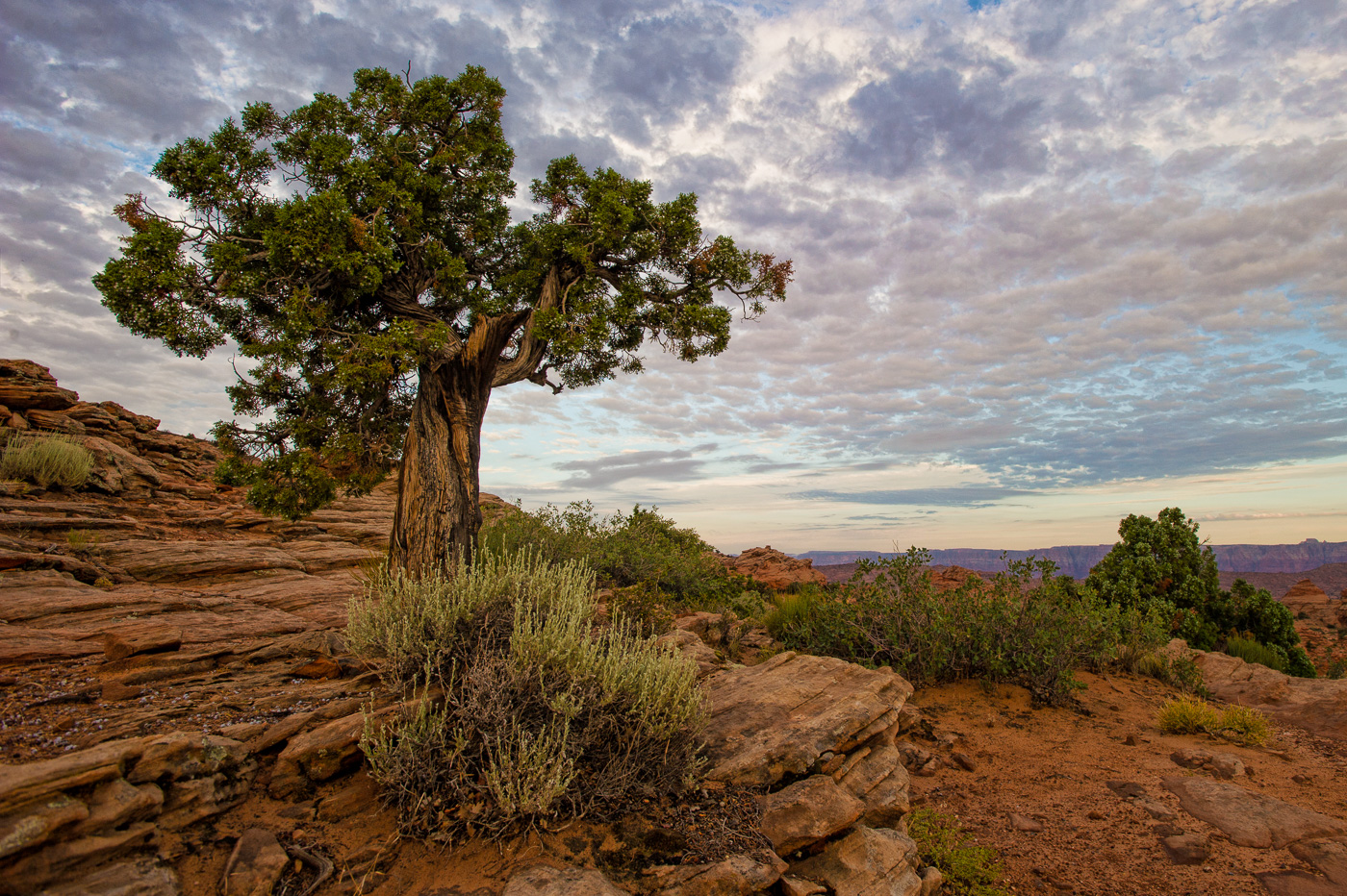 Gnarled tree overlooking desert near Lake Powell.