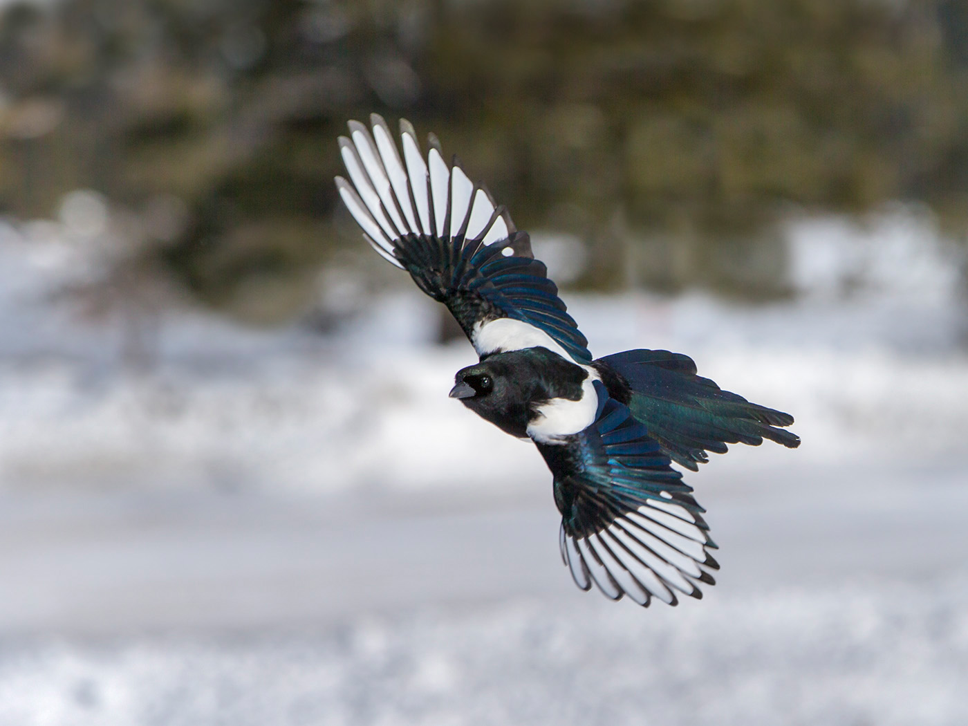 Magpies are not just a black and white bird. They have beautiful blue feathers when viewed from the top.