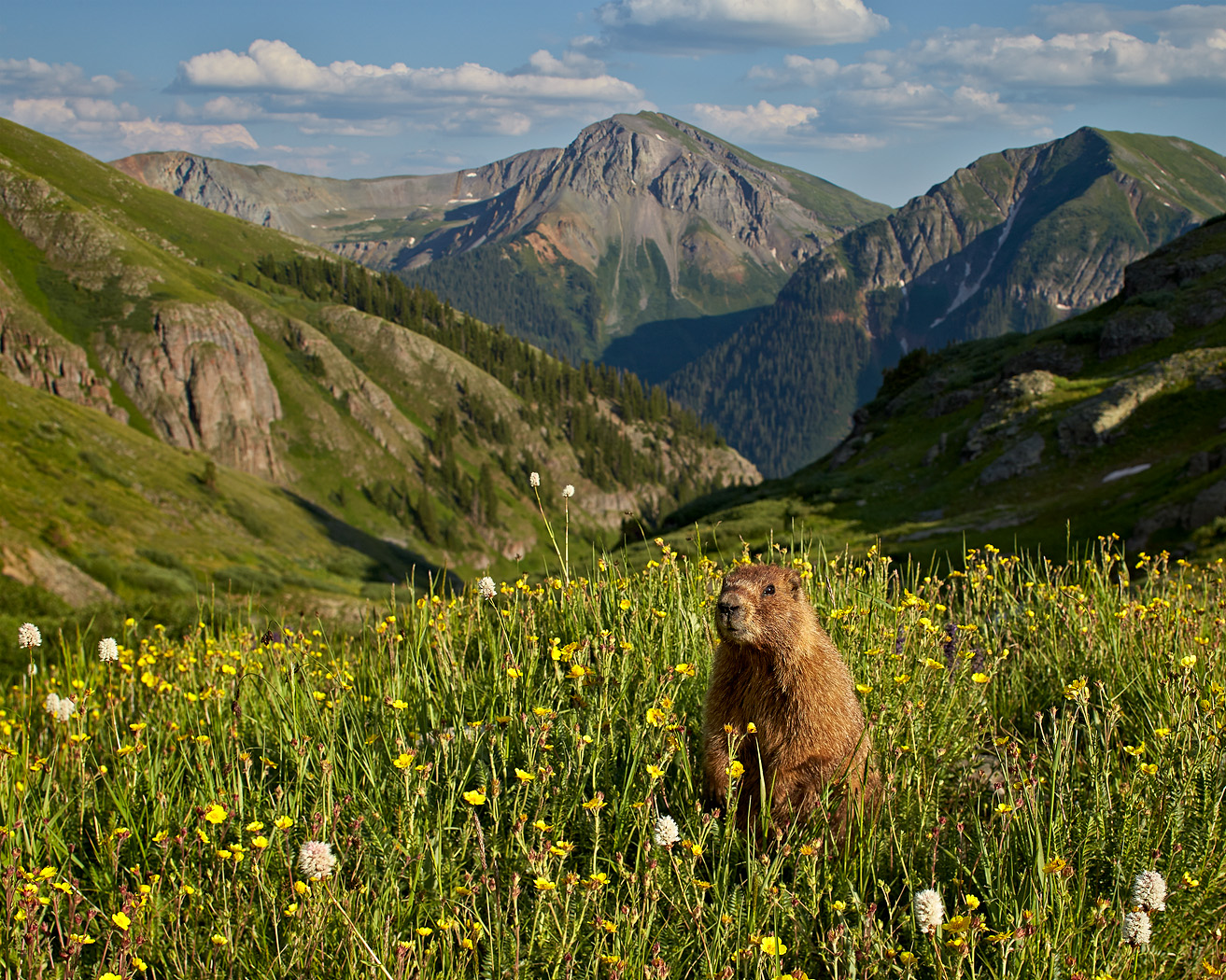 This marmot was so interested in chewing on the wires and/or hoses on my Jeep that I was able to corral it into a nice location to capture it in its environment. Taken in July with a 45mm tilt/shift lens --- not my usual wildlife lens. :)
