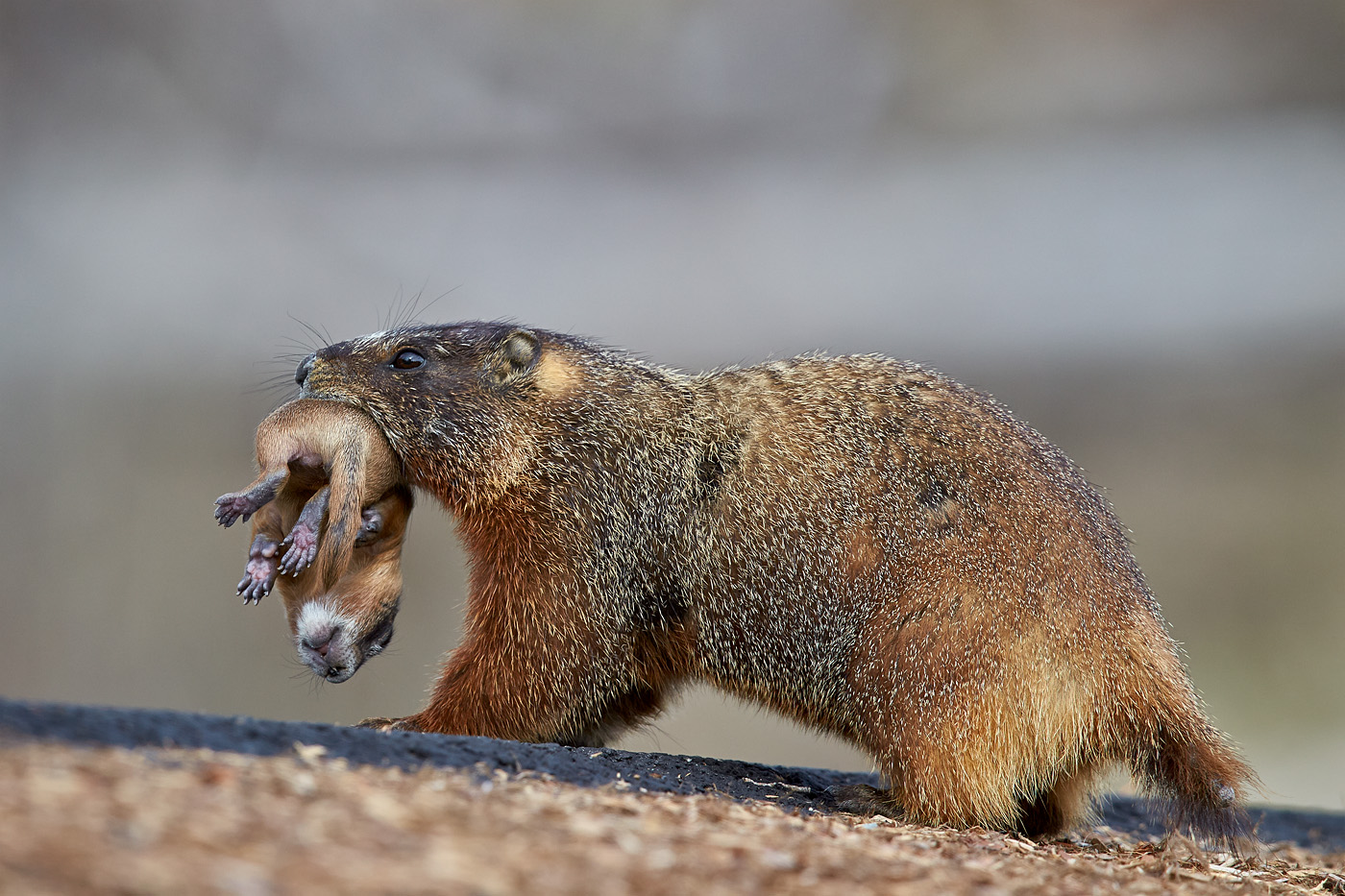 I thoroughly enjoyed photographing this Yellow-Bellied Marmot female as she carried her pups from one den location to another.