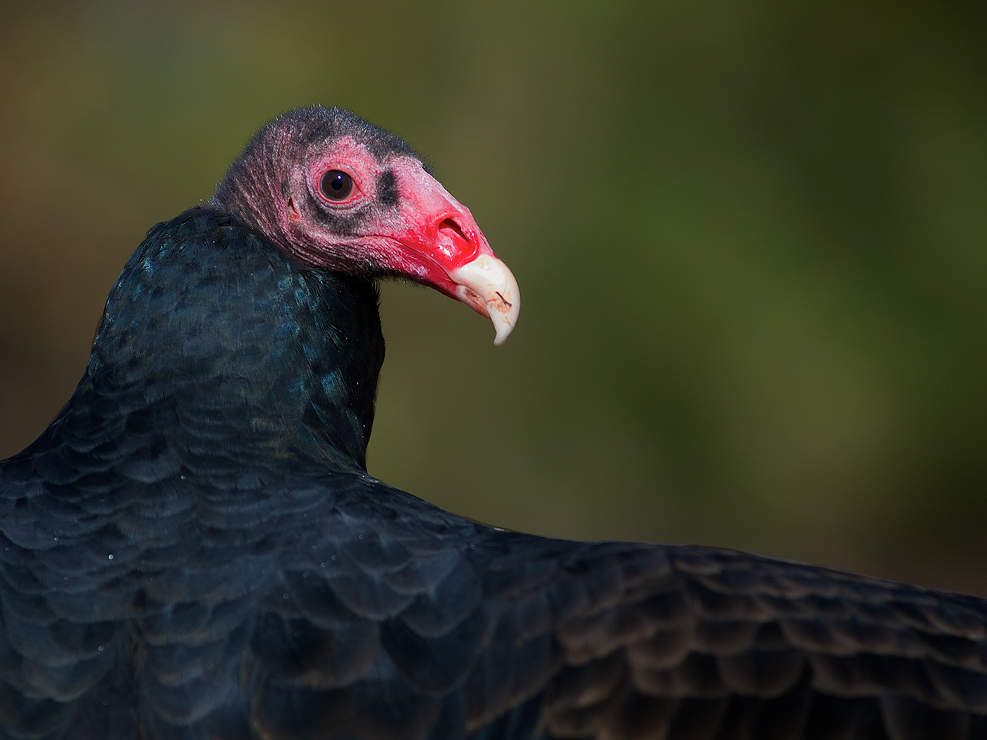 A permanent resident of the Rocky Mountain Raptor Program, this turkey vulture glanced back over it's shoulder at me as it spread it's wings to soak up the sun on a cool November morning. As a wild bird it would have migrated south by this time of year.