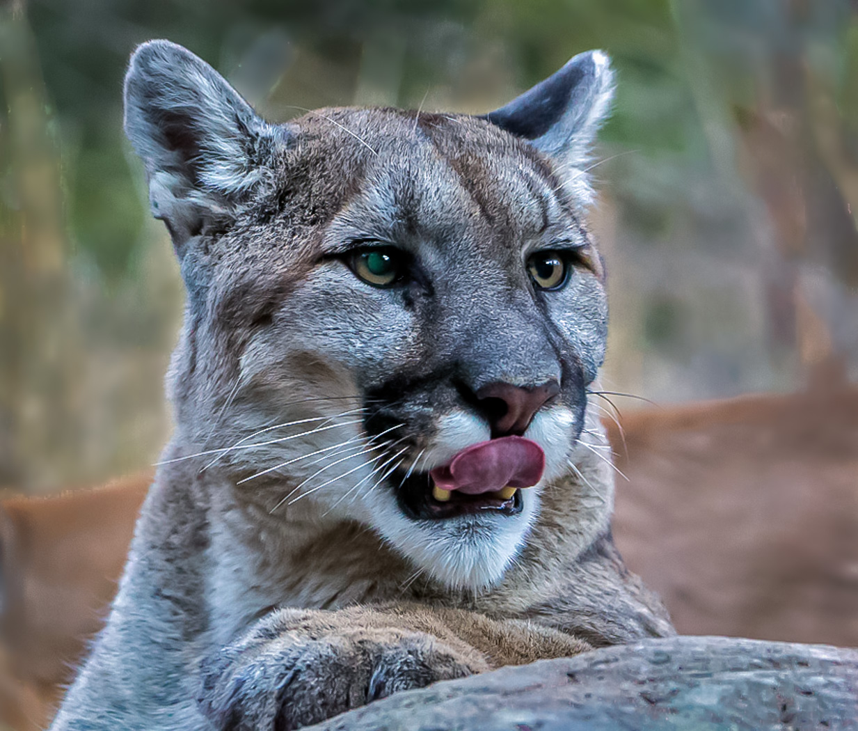 Mountain lion licking his lips