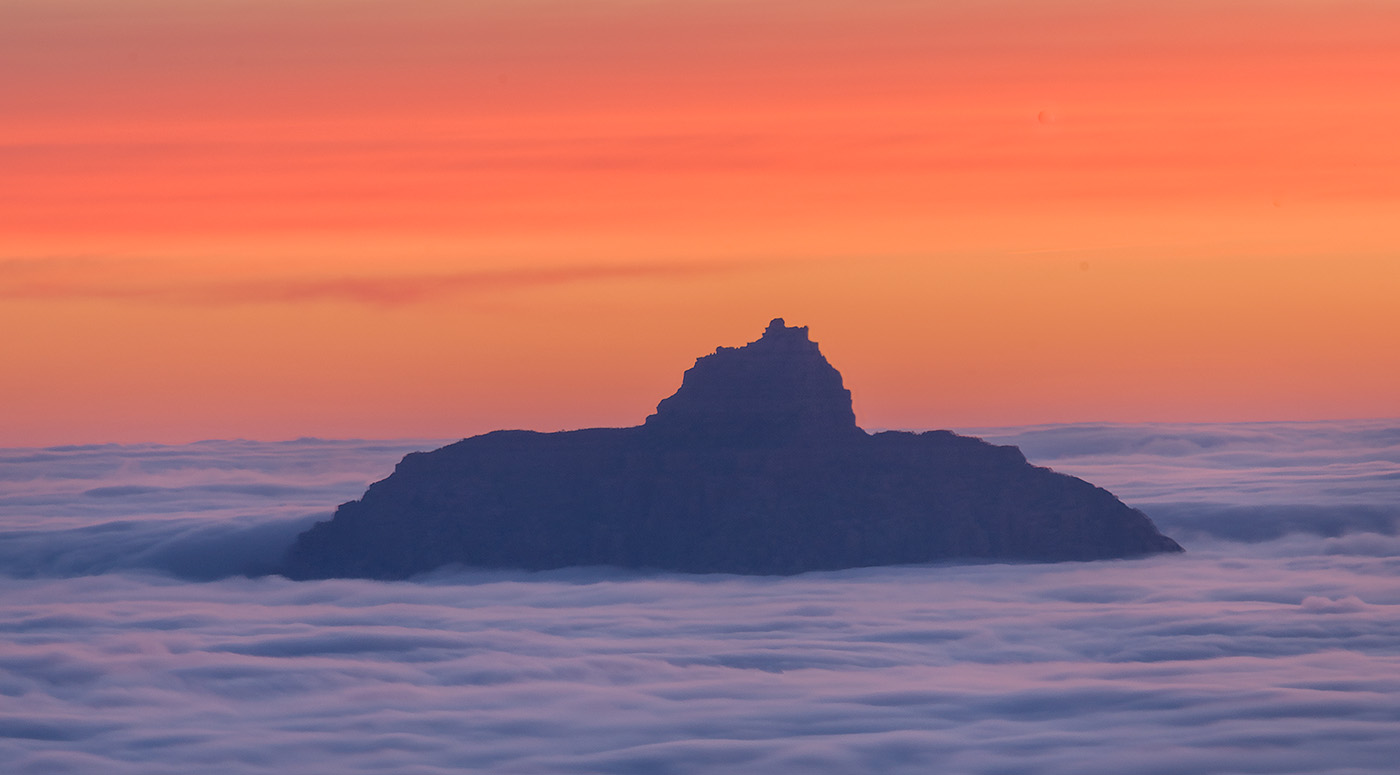 Picture taken early morning during temperature inversion filled Canyon in fog.
