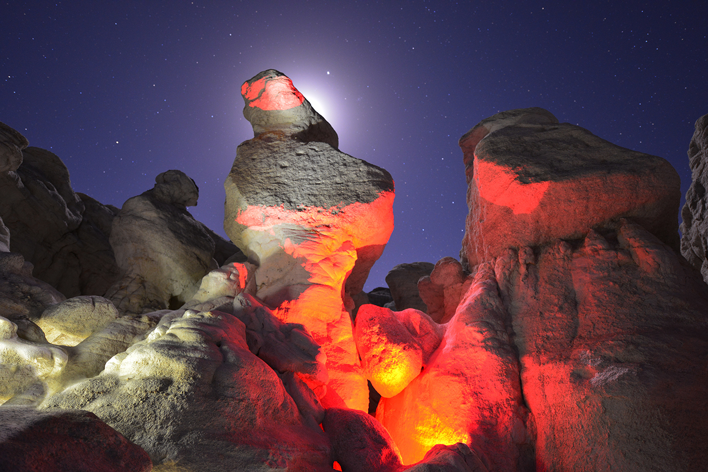 painting with a red light and the moon back light