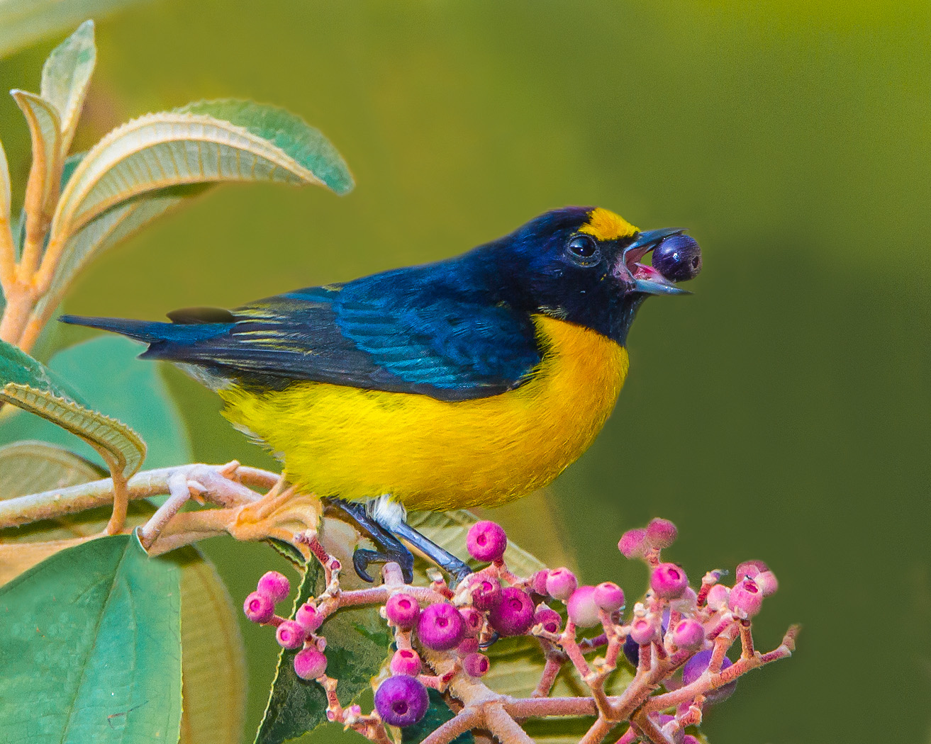 Male Scrub Euphonia with Berry