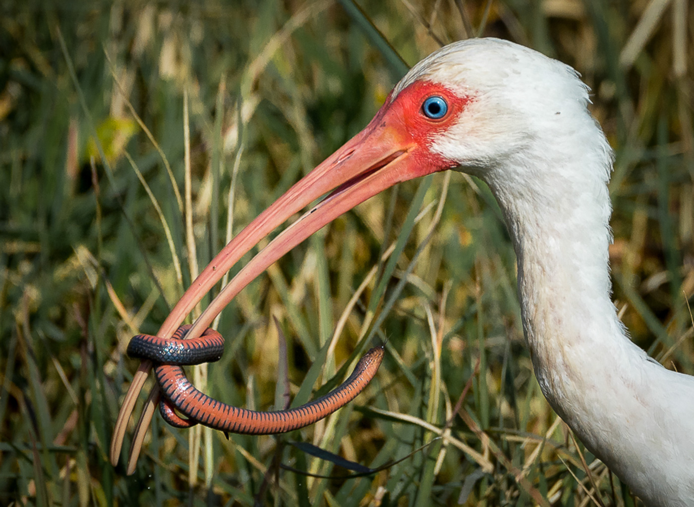 While photographing an American Bittern this nearby White Ibis caught a Black Swamp Snake and wrestled with it for a least 30 minutes