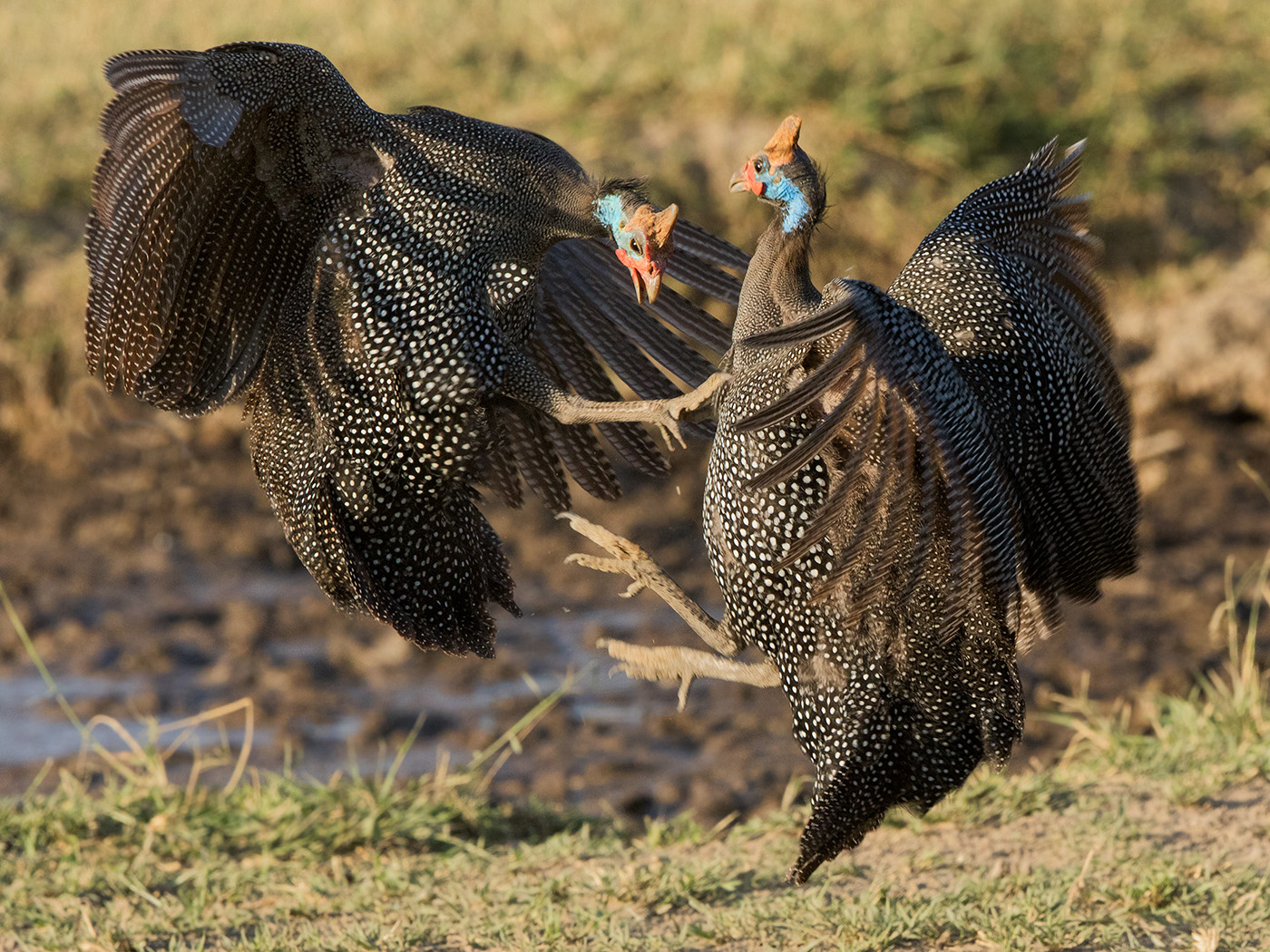 Helmeted Guineafowl having an argument