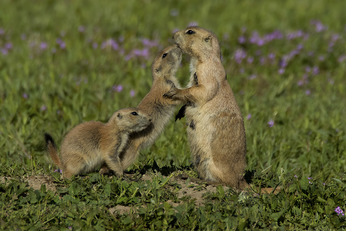 Female black-tailed prairie dog with 2 pups