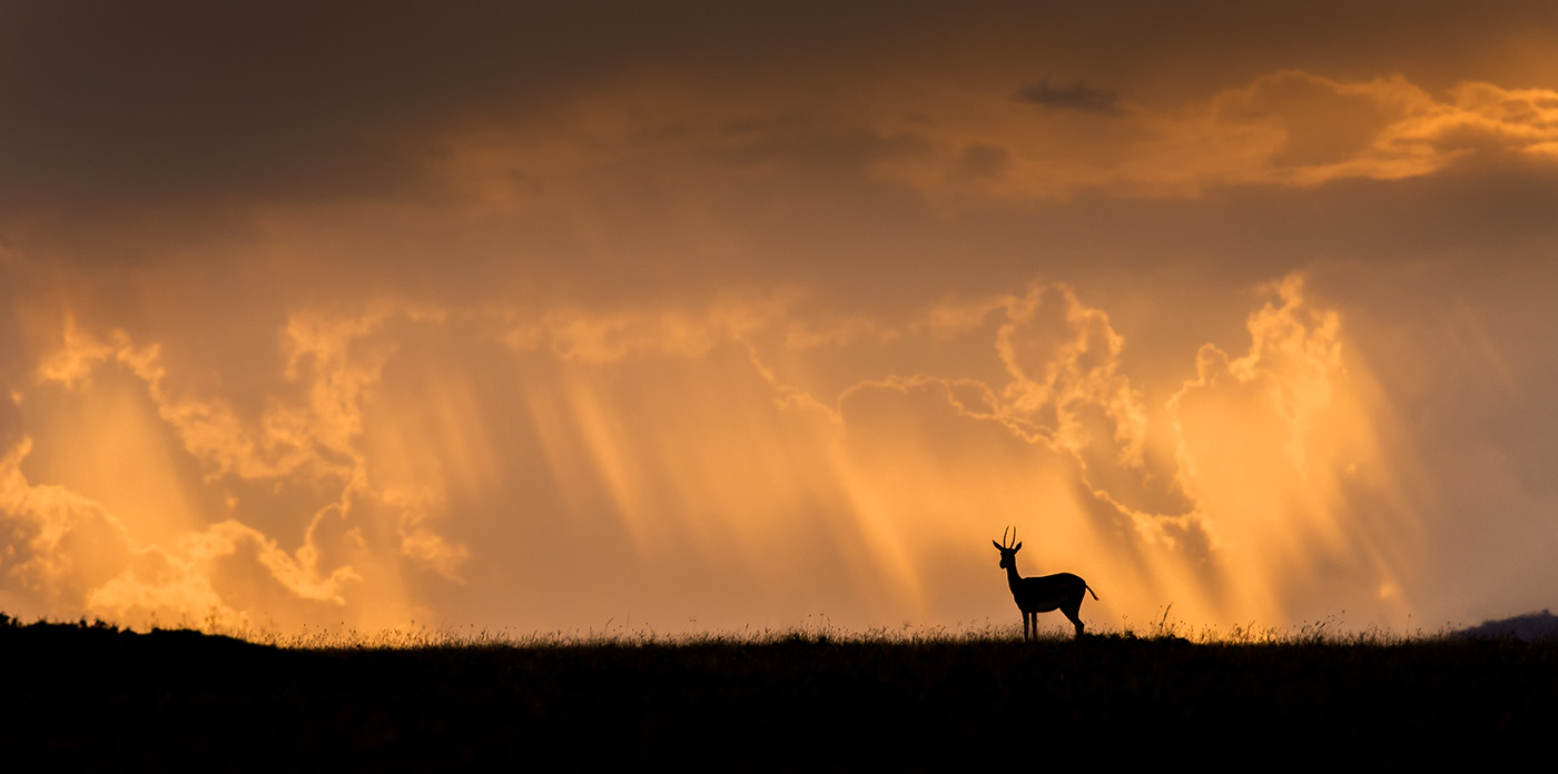 This image was made during my April safari to the Serengeti. We were out on an evening game drive looking for whatever presented itself. Toward sunset, cloud drama appeared and God rays formed on the western horizon. A lone Thompsons gazelle struck a pose on the skyline. It was a very nice moment. Nikon D7200 80-400 Nikkor 1/750 at f10 ISO 400