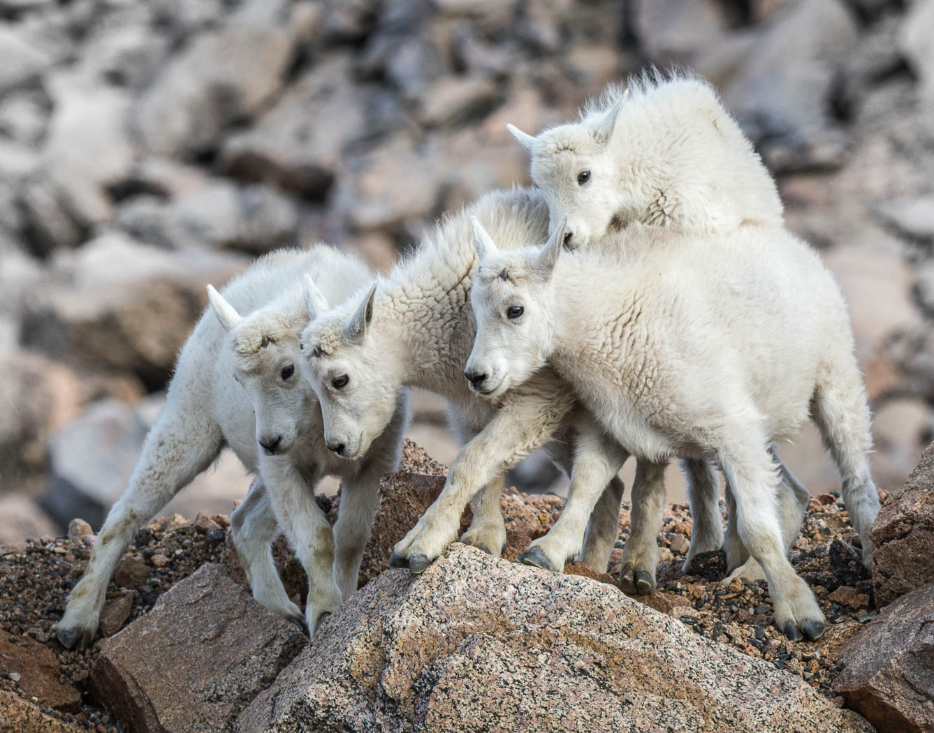 Multiple goat kids took multiple tumbles working their way down the tundra and talus.