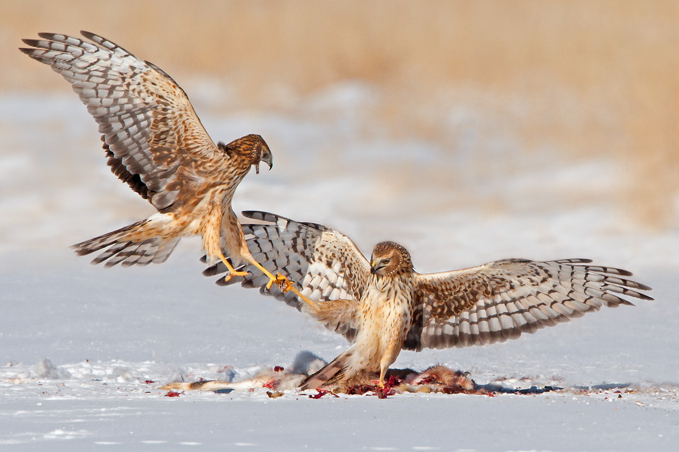 Northern Harriers Fighting Over Food