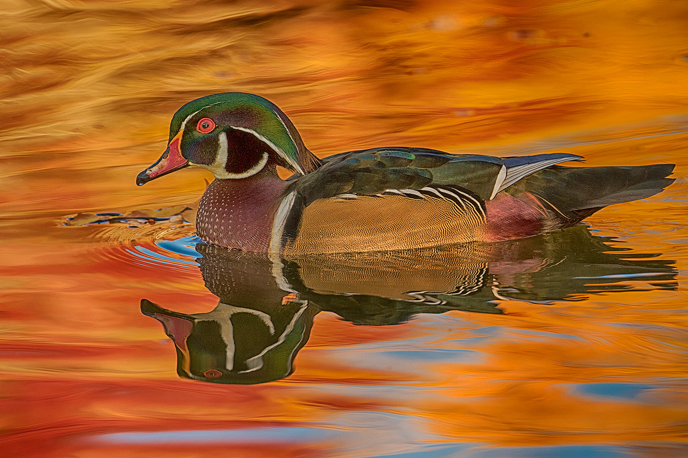 Wood duck with fall reflections