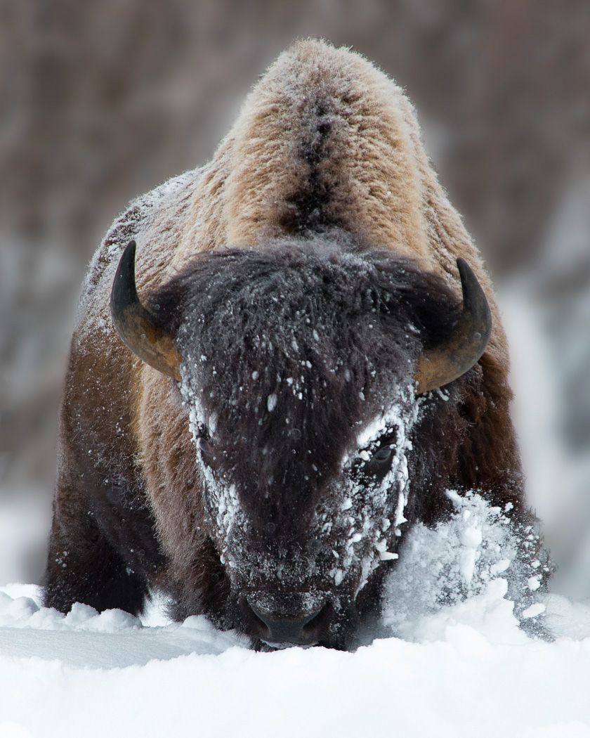 Big old Bison pushing through the snow at Yellowstone in the Lamar Valley.