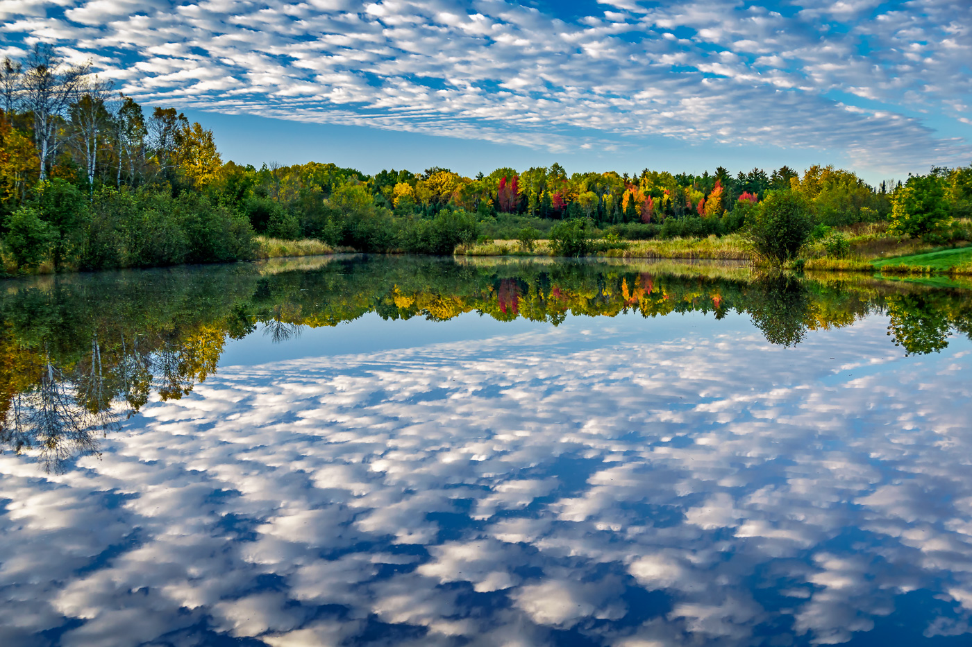 Driving early in the morning in search of Fall colors saw these amazing clouds. Found this pond to capture the reflection of fall colors along with these unique clouds. Right place right time!