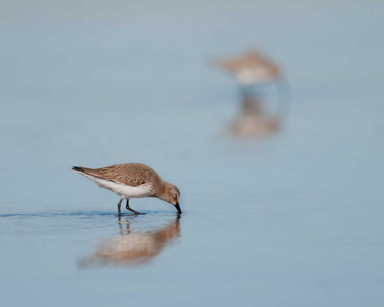 Shorebirds in a tranquil, still bay