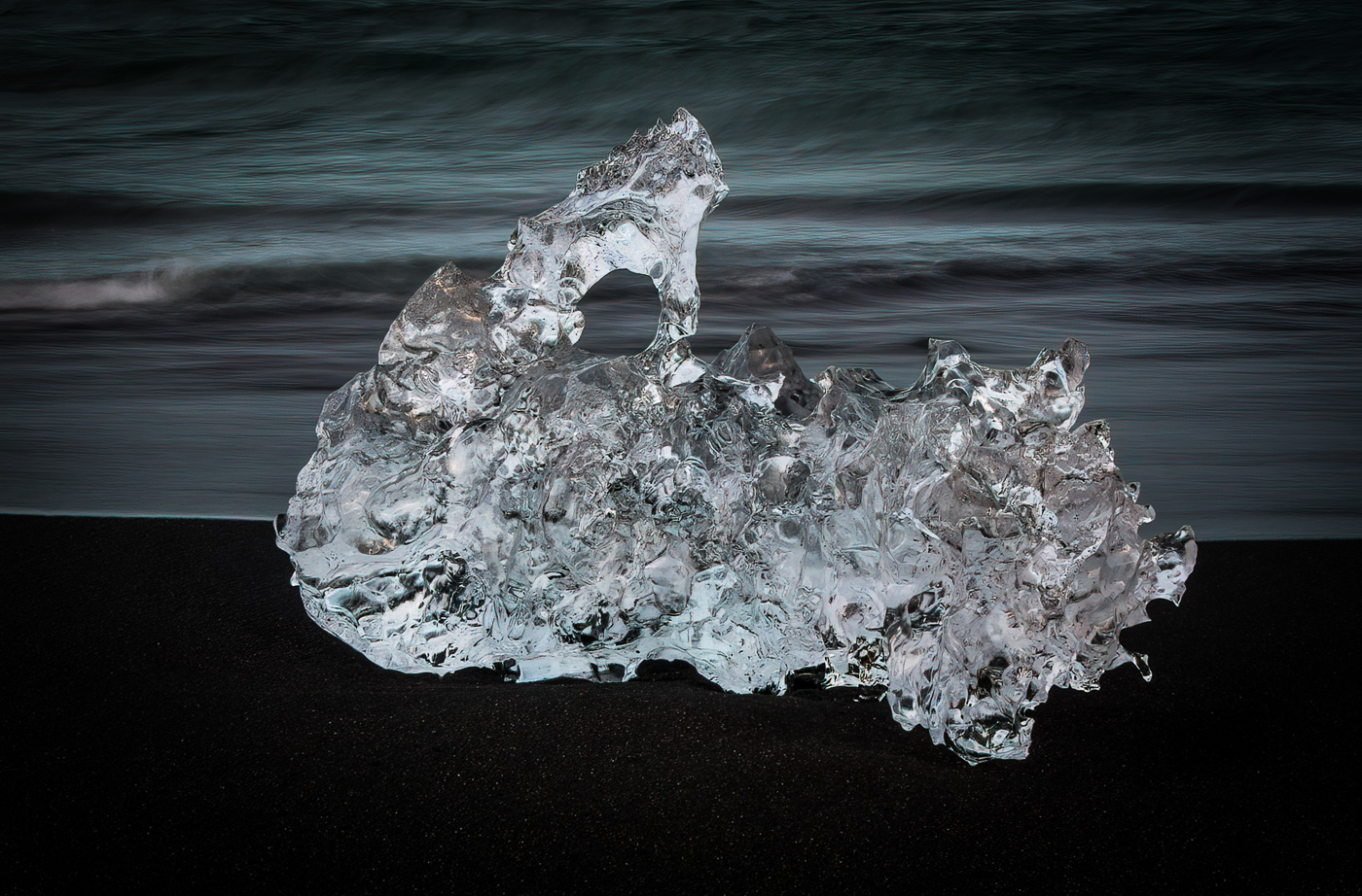 Using the elements of the black sand and the power of the ocean waves, each iceberg is sculpted to perfection and showcased on Diamond Beach.